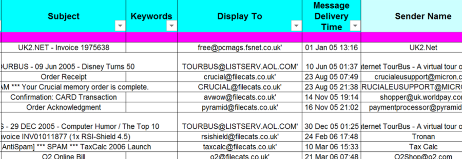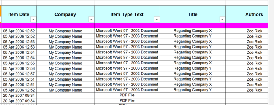 (1) Disclosure data should be set out in a single, continuous table or spreadsheet, each separate column containing exclusively one of the following types of disclosure data –