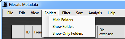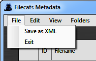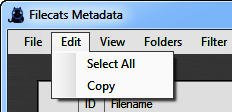 The following menus are available in Filecats Explore and Filecats Metadata.