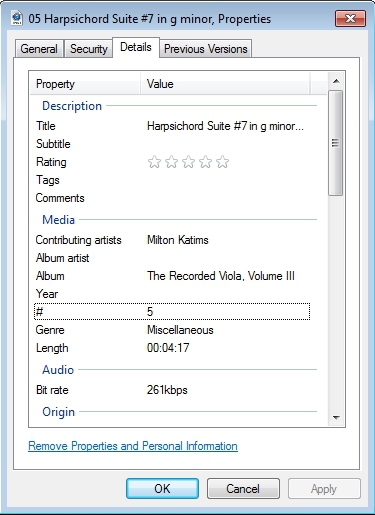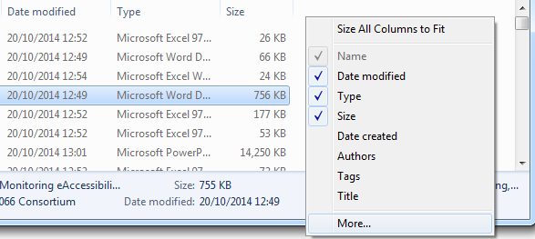 The second way is to right-hand click on the file, (left) click on Properties, and then go to Details (in Windows XP, this is called “Summary”). The resulting dialog box shows all the document properties which Windows can read.