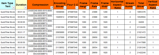 If you want to see two spreadsheets that Filecats Professional has created of audio/video metadata, please download the below: