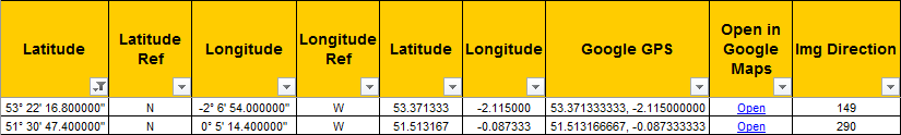 Both these pieces of software for Windows 7 and upwards also create hyperlinks, not just to the file and to the folder, but also to Google Maps, so you can pin-point where a particular photo was taken. Want to see how? See this article, which also shows the various types of formats it can be exported into?